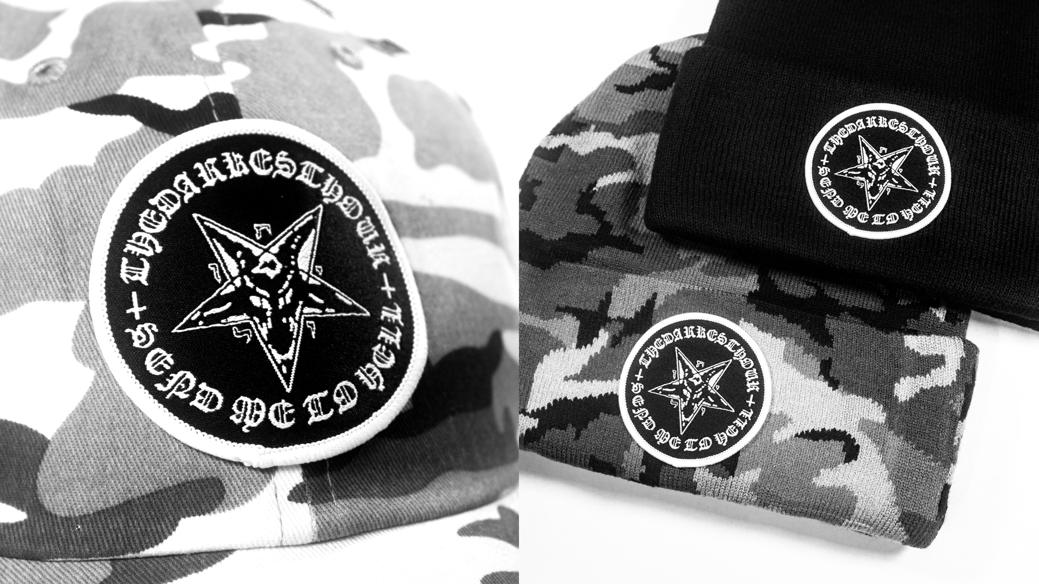 "SEND ME TO HELL" PATCH BEANIE (GREY CAMO)